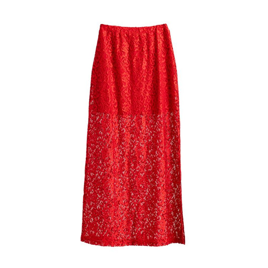 LuLaRoe Tihane Lace Maxi Skirt - Solid Scarlet Lace Statement