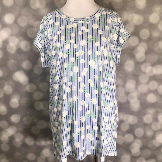 Ashley - Blue/White Stripe Ditsy Daisy
